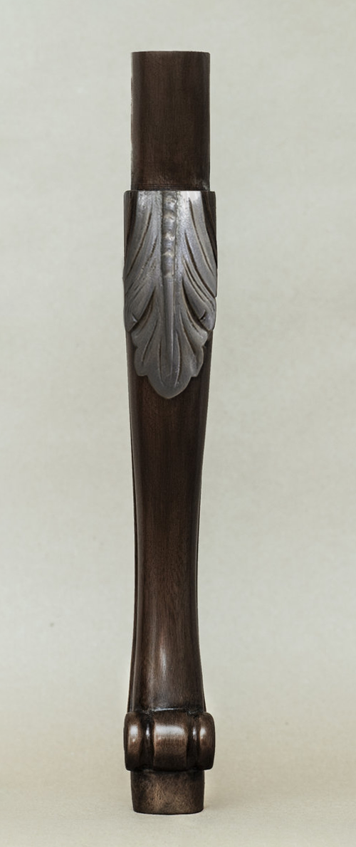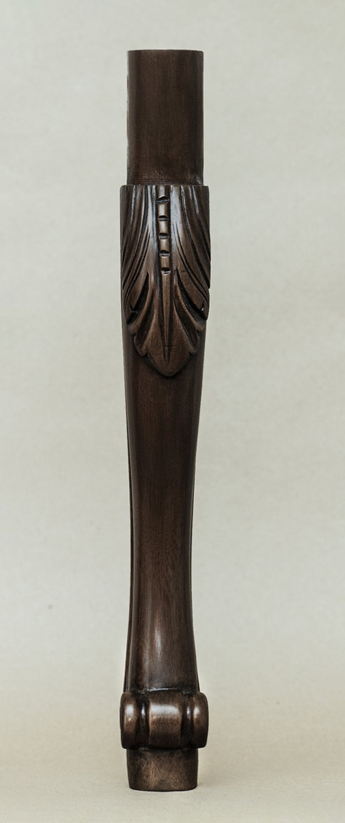 Dark ebony hand-finished natural wood stain with a slight varnish shine.
